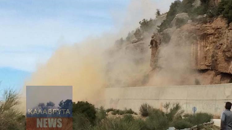 Ελεγχόμενη έκρηξη πραγματοποιήθηκε στο 12ο χιλιόμετρο στην Πούντας – Καλαβρύτων, στο ύψος του τούνελ του Μεγάλου Σπηλαίου, προκειμένου να απομακρυνθούν επικίνδυνοι βράχοι.
