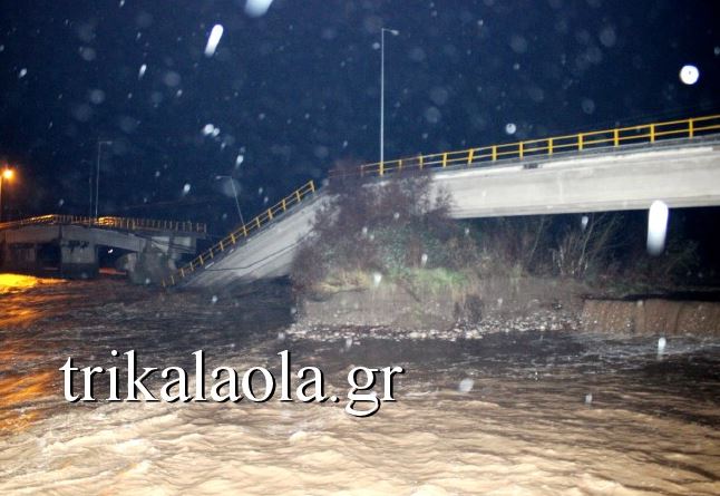 Κατέρρευσε χτες το βράδυ από τα ορμητικά νερά, η κεντρική γέφυρα του Πηνειού ποταμού στη Διάβα Καλαμπάκας. Όπως αναφέρει το trikalaola.gr από θαύμα δεν υπήρξαν θύματα καθώς εκείνη τη στιγμή περνούσαν πολίτες με τα αυτοκίνητά τους πάνω από τη γέφυρα. Ανάμεσα στους αυτόπτες μάρτυρες ήταν και ο αντιπεριφερειάρχης Τρικάλων και ο αντιδήμαρχος Καλαμπάκας οι οποίοι είχαν περάσει από τη γέφυρα λίγα λεπτά νωρίτερα.