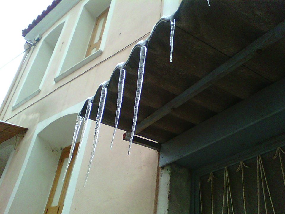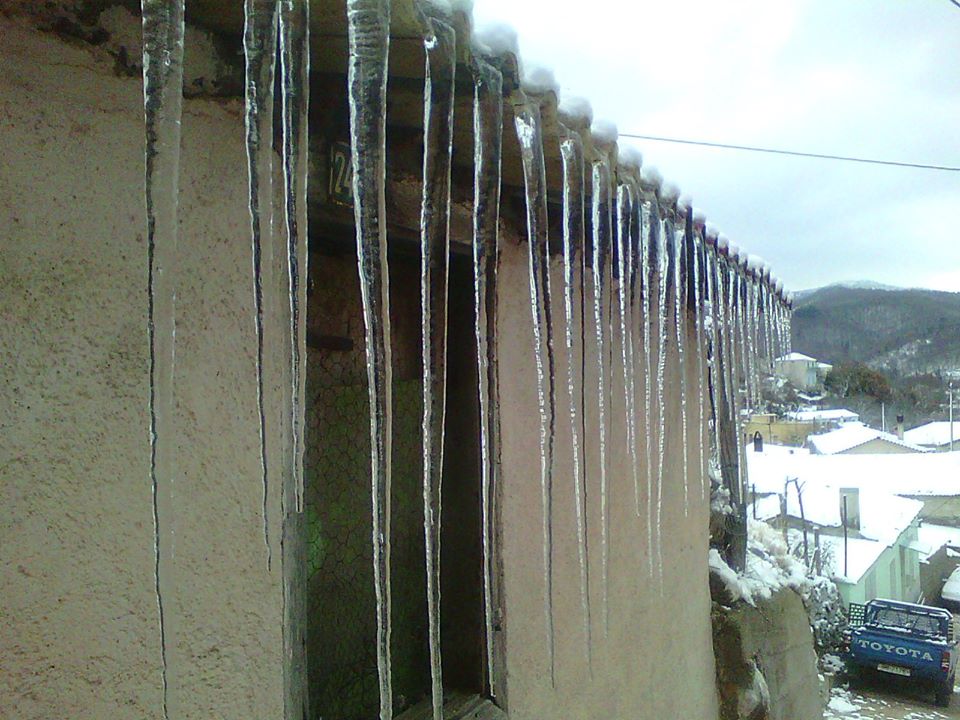 Όπως φαίνεται στις εικόνες σταλακτίτες κρέμονται από τις χιονισμένες σκεπές των σπιτιών.