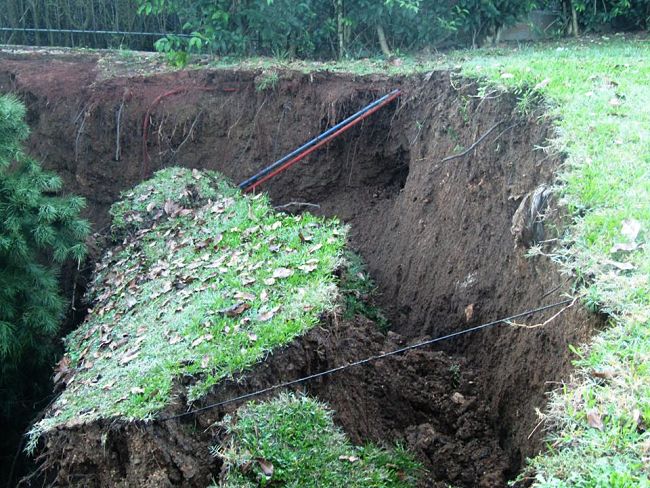 Το έδαφος σε μία έκταση 80 τετραγωνικών περίπου βούλιαξε, συμπαρασύροντας δέντρα αλλά και μία μικρή αποθήκη που βρίσκονταν στο σημείο.