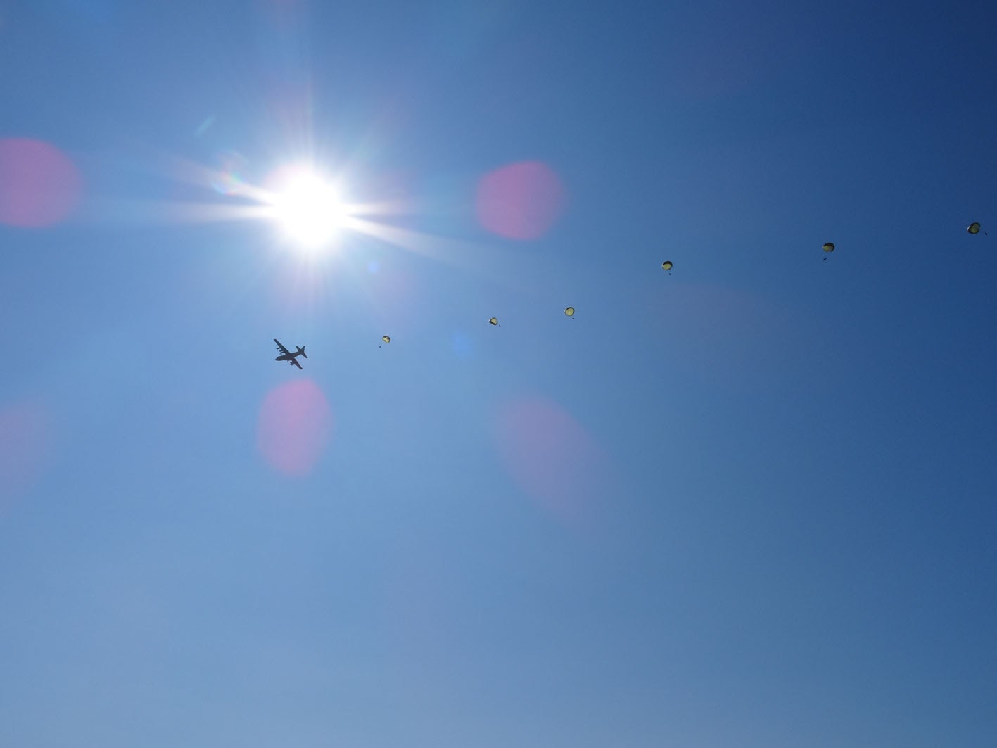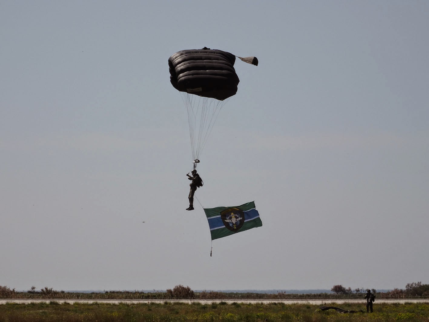 Όπως αναφέρει το thrakitoday.com, οι 40 αλεξιπτωτιστές κάνοντας πτώση από ύψος 10.000 ποδιών εντυπωσίασαν τους παρευρισκόμενους επιβεβαιώνοντας την άρτια εκπαίδευση των στελεχών των Ενόπλων Δυνάμεων της χώρας.