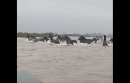 Ένα ασυνήθιστο και εντυπωσιακό σκηνικό άγριας ζωής καταγράφηκε στο Δέλτα του Έβρου, όπου μία αγέλη αλόγων φαίνεται να διασχίζει τον φουσκωμένο ποταμό.
