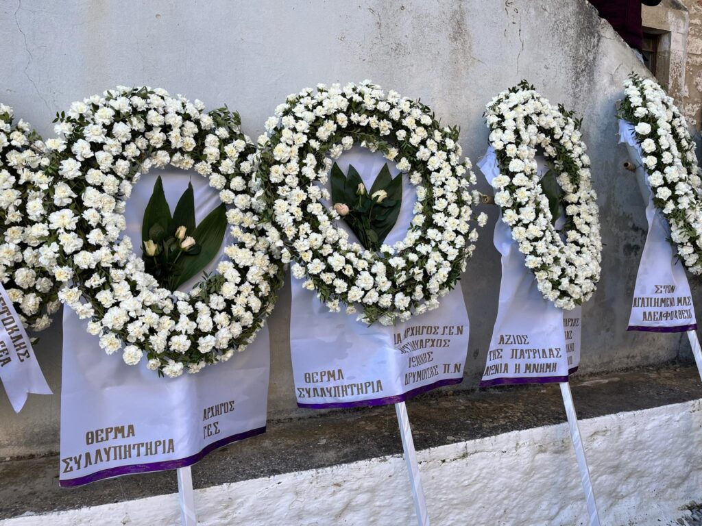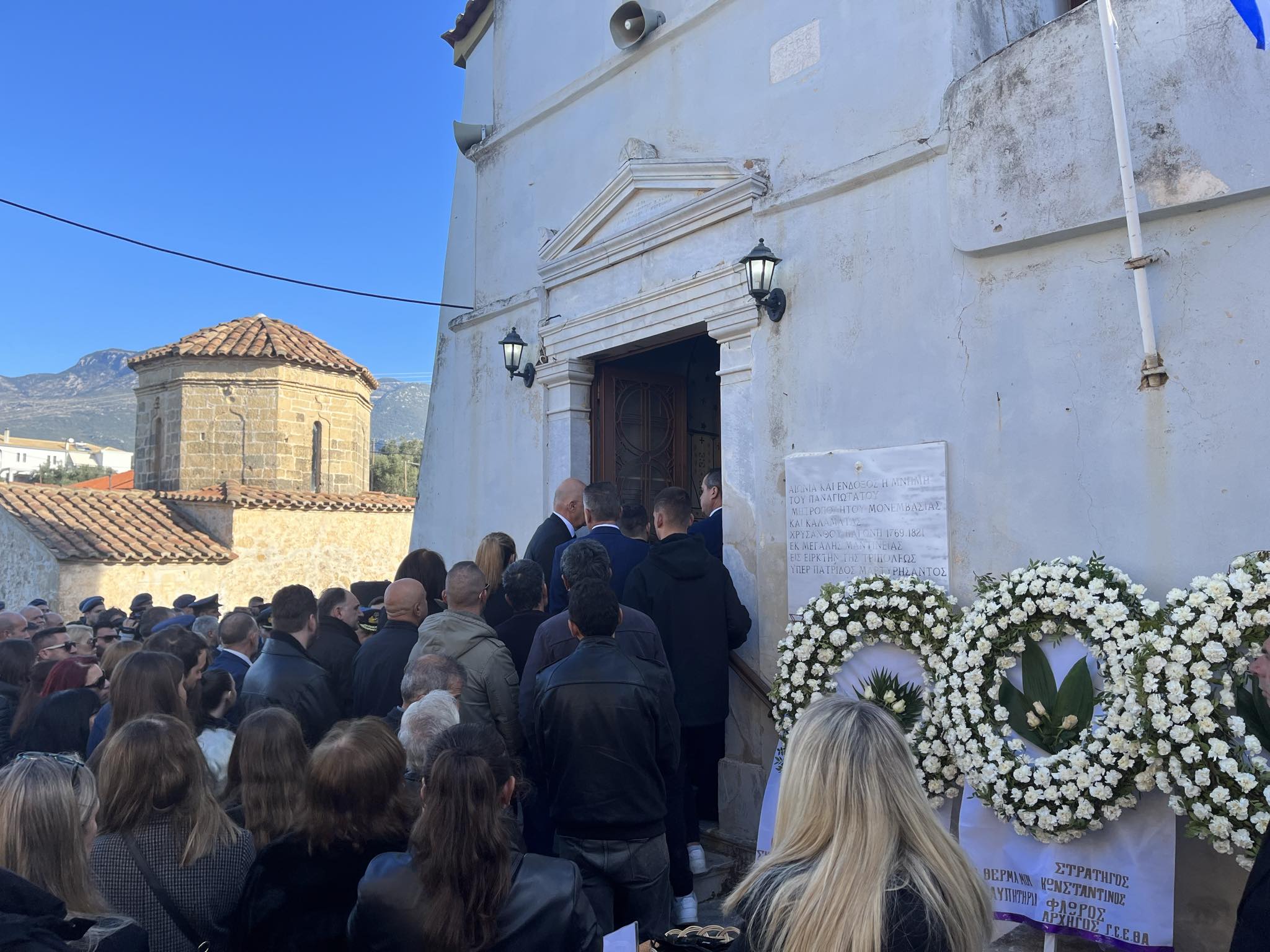Πλήθος κόσμου έχει συρρεύσει στον ιερό ναό για να πουν το τελευταίο αντίο στον επισμηναγό, αλλά και για να συμπαρασταθούν στα μέλη της οικογένειάς του, ενώ στρατιωτικό άγημα αποδίδει τιμές.