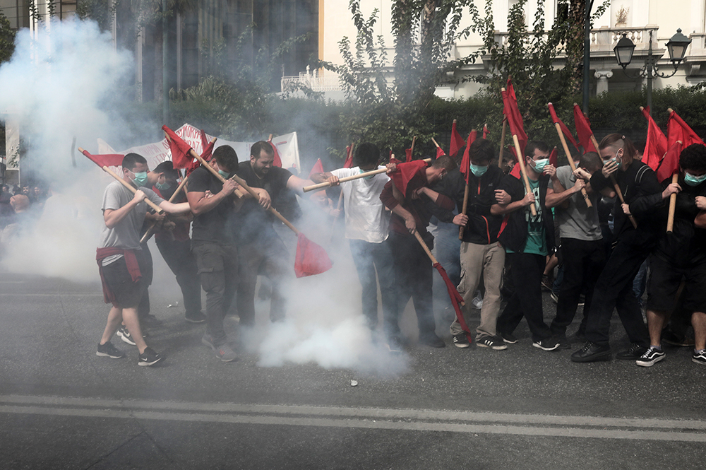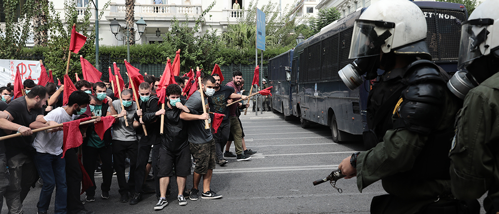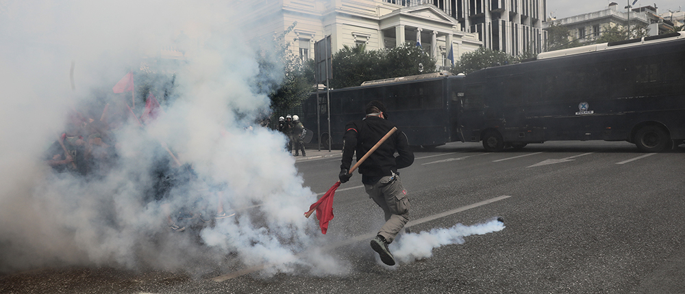 Επεισόδια μεταξύ φοιτητών και αστυνομικών των ΜΑΤ σημειώθηκαν όταν η πορεία διαμαρτυρίας έφθασε έξω από την Βουλή.