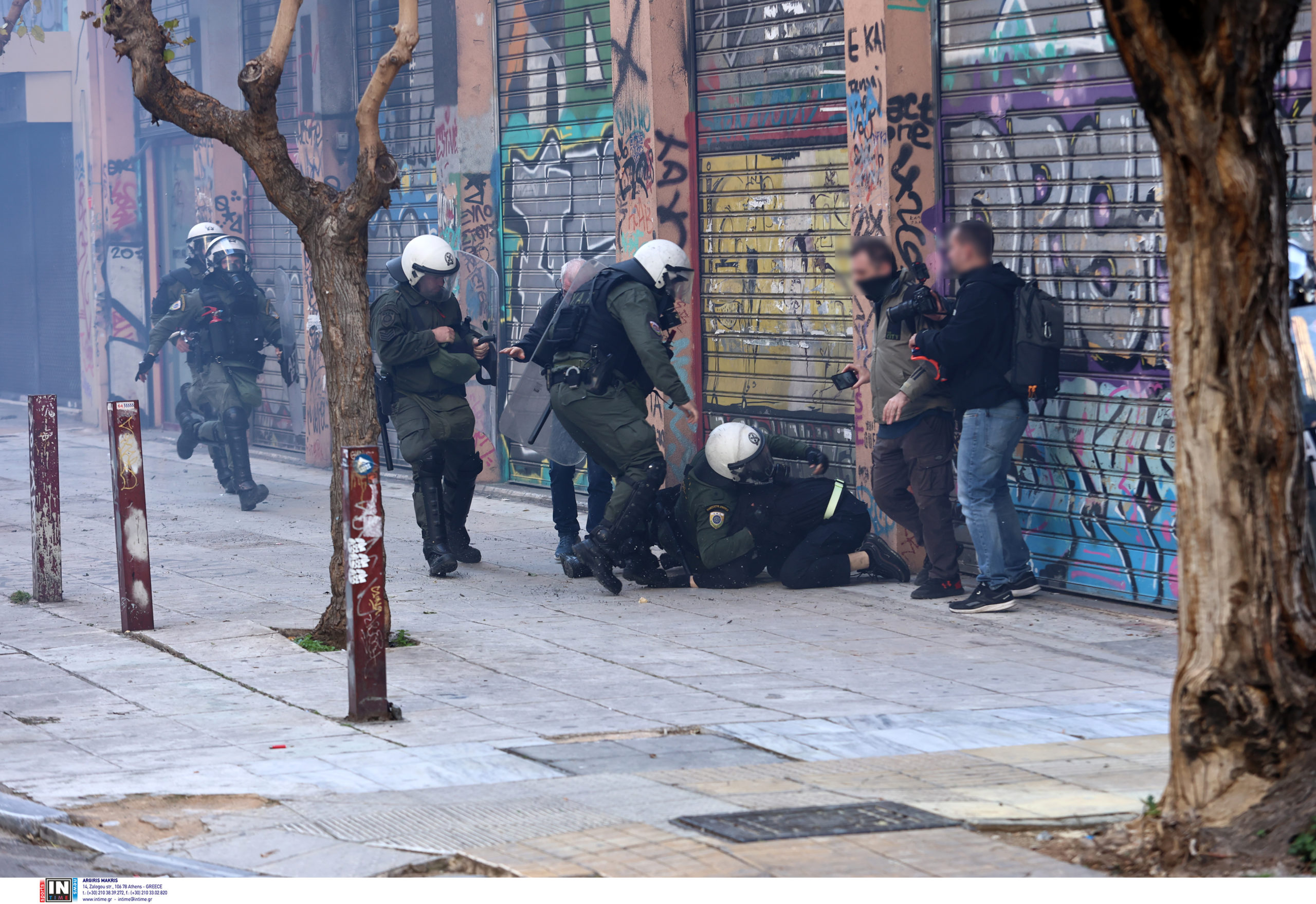Οι διαδηλωτές, σύμφωνα με την ΕΛΑΣ, επιτέθηκαν με κοντάρια στους αστυνομικούς, που απάντησαν κάνοντας περιορισμένη χρήση χημικών.