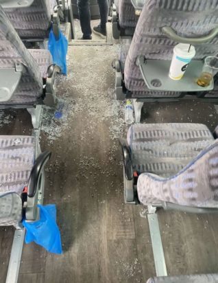Ακολούθησε σκηνικό έντασης μεταξύ των οπαδών με κάποιους να πετούν πέτρες προς το λεωφορείο με τους οπαδούς της ΑΕΚ με αποτέλεσμα να σπάσουν τα τζάμια και το παρμπρίζ.