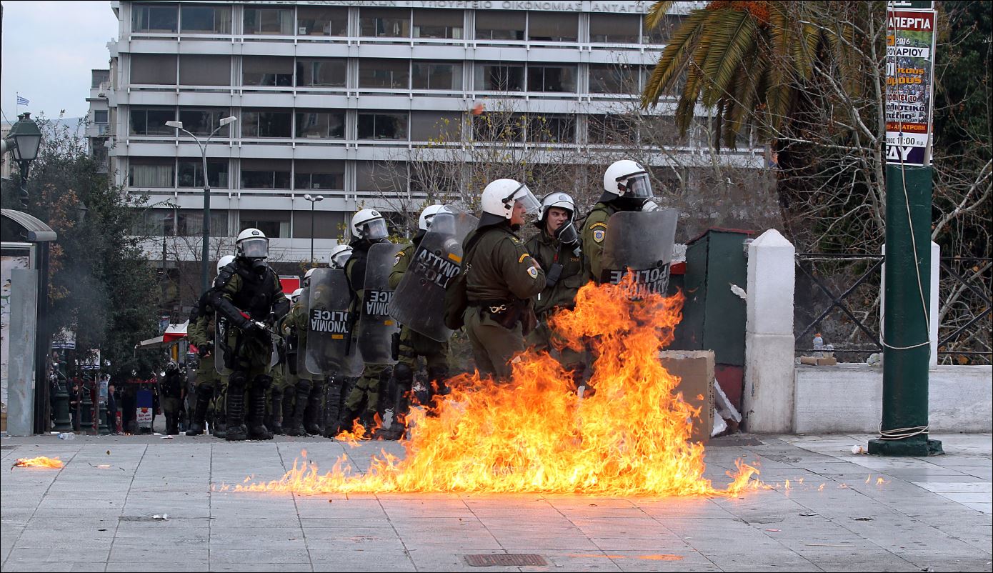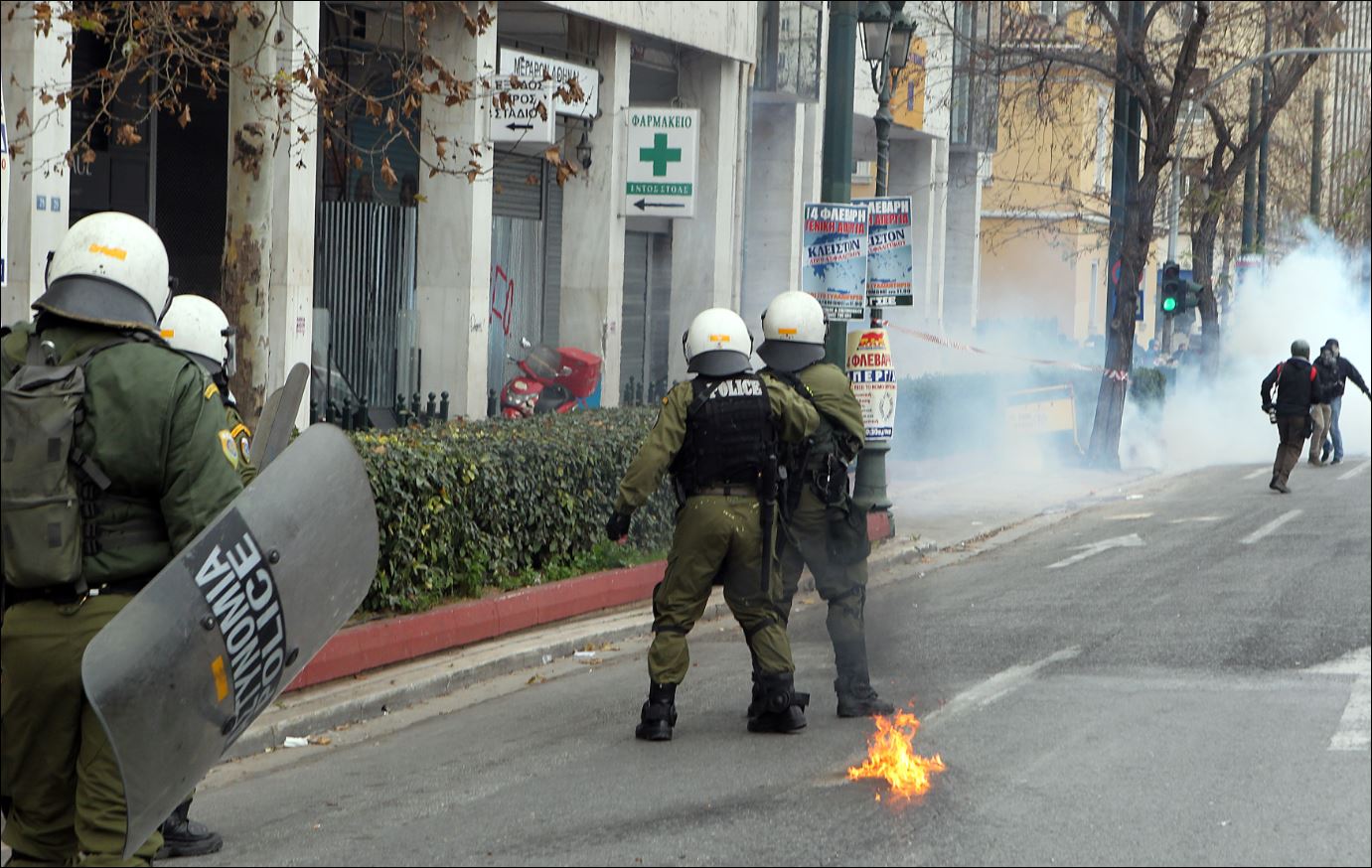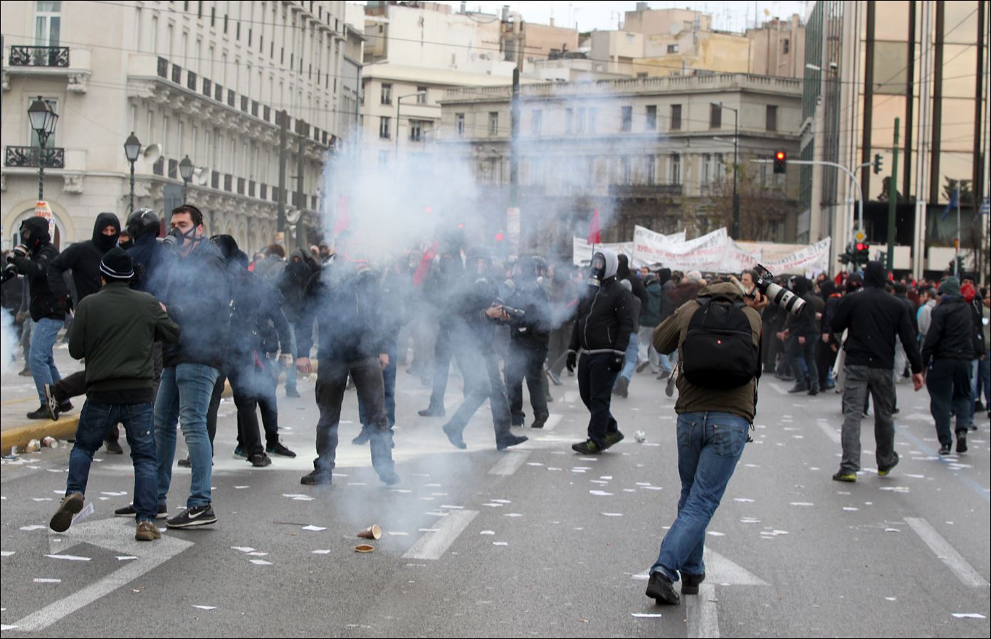 Επεισόδια στην πλατεία Συντάγματος και την οδό Πανεπιστημίου, με ομάδες κουκουλοφόρων να πετούν βόμβες μολότοφ προς τις αστυνομικές δυνάμεις.