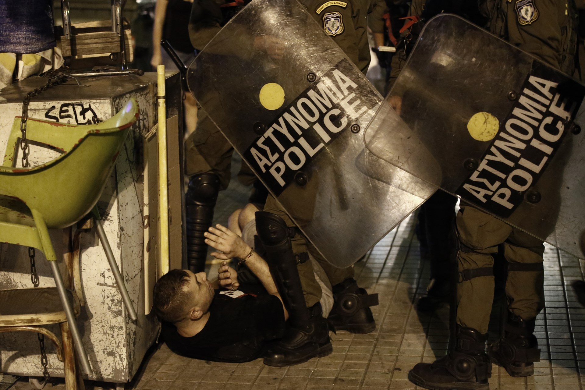 Η ένταση ξεκίνησε όταν οι διαδηλωτές έφτασαν στο ύψος του νοσοκομείου «Ερρκίκος Ντυνάν», όπου η αστυνομία είχε στήσει φραγμό με κλούβες των ΜΑΤ, έτσι ώστε οι διαδηλωτές να μην καταφέρουν να πλησιάσουν στα γραφεία της Χρυσής Αυγής.Τότε, άγνωστοι άρχισαν να ρίχνουν βόμβες μολότοφ προς τις δυνάμεις των ΜΑΤ που βρίσκονταν στο σημείο, ενώ οι αστυνομικές δυνάμεις απάντησαν με χρήση χημικών.