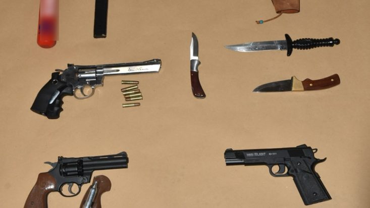 Επιπλέον, κατά την ίδια ανακοίνωση, συνελήφθη ένας 15χρονος μαθητής επειδή είχε αναρτήσει σε διαδικτυακή εφαρμογή φωτογραφίες με μαχαίρια και πιστόλια. Κατά την έρευνα που διενεργήθηκε στο σπίτι του κατασχέθηκαν δύο περίστροφα αερίου με έξι φυσίγγια, ένα μαχαίρι, ένας σουγιάς, μία θήκη όπλου, ένα κοντάρι κι ένα ρόπαλο του μπέιζμπολ. Εκτός από τον ανήλικο συνελήφθη κι ο 54χρονος πατέρας του, καθώς κατείχε μία κυνηγετική καραμπίνα και 17 φυσίγγια, χωρίς να κατέχει την απαιτούμενη άδεια.