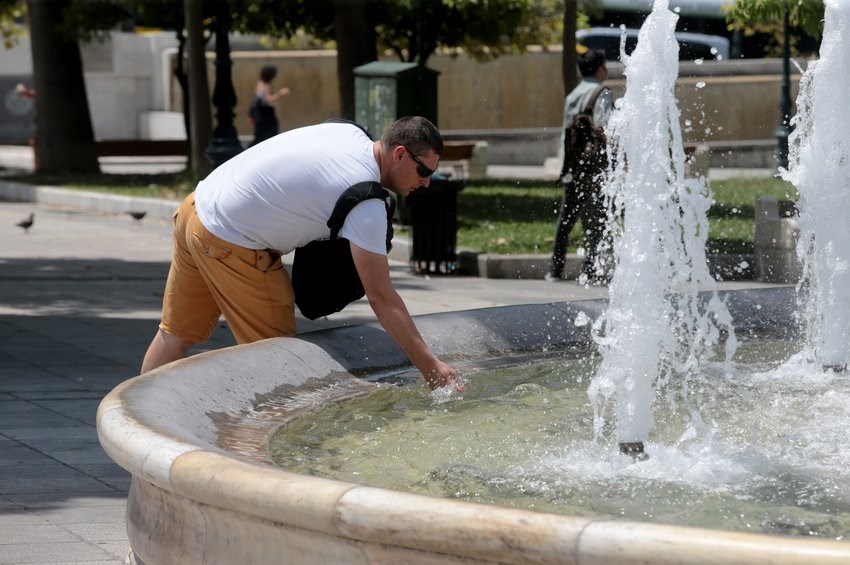 Κάποιοι όμως, όπως τουρίστες αλλά όχι μόνο, ήταν αναγκασμένοι να βρίσκονται στο κέντρο της Αθήνας. Και φρόντισαν να δροσιστούν λίγο στα σιντριβάνια που υπάρχουν στις πλατείες.