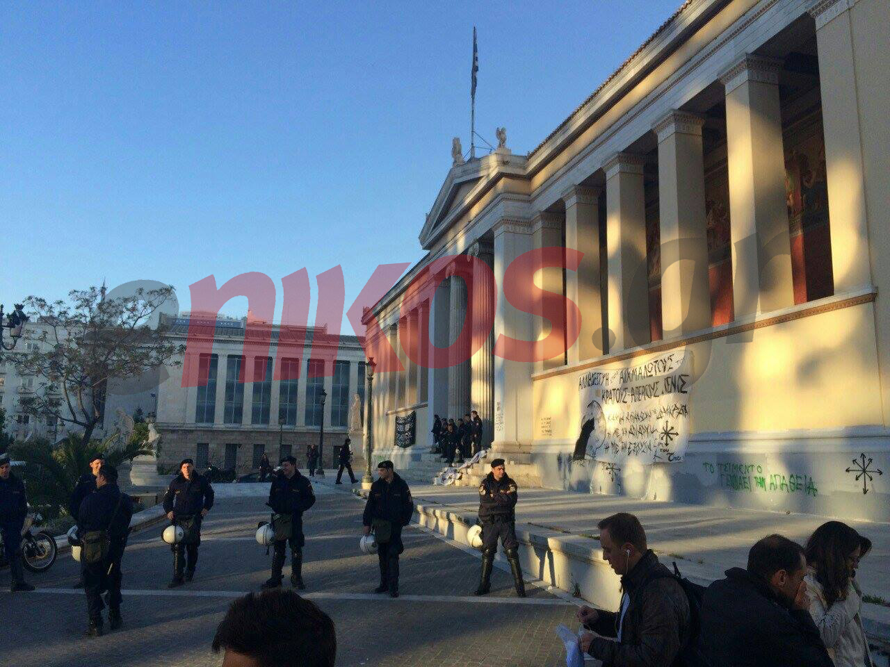 Καταληψίας παρακολουθεί τα επεισόδια από την οροφή της πρυτανείας – ΦΩΤΟ