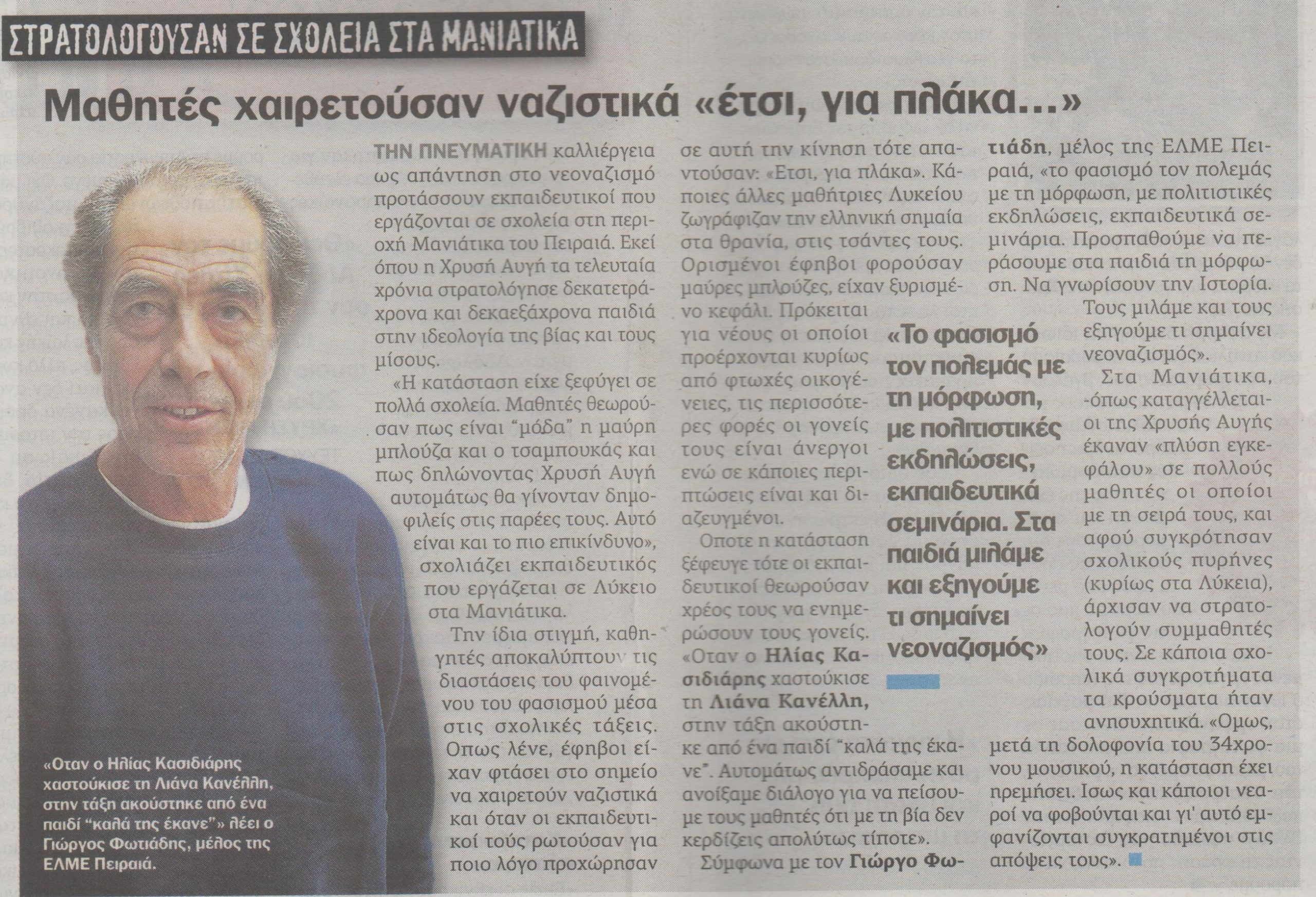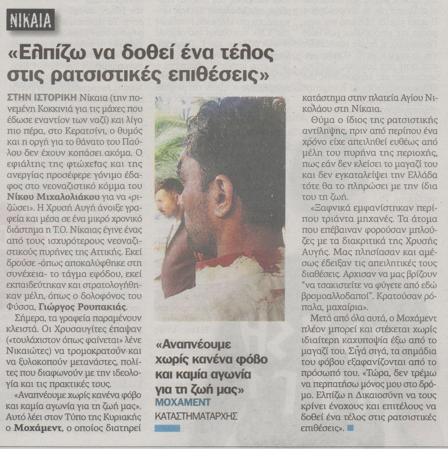 Κάτοικοι σε Πέραμα, Κερατσίνι δεν τρομοκρατούνται, πλέον, και λένε “όχι”. Σχεδόν ένα μήνα μετά τη δολοφονία σχολιάζουν «δυστυχώς την τελευταία πενταετία υπήρξε μια ανοχή. Ανοχή που ήταν και μια από τις αιτίες που οδήγησαν στη δολοφονία του Παύλου».