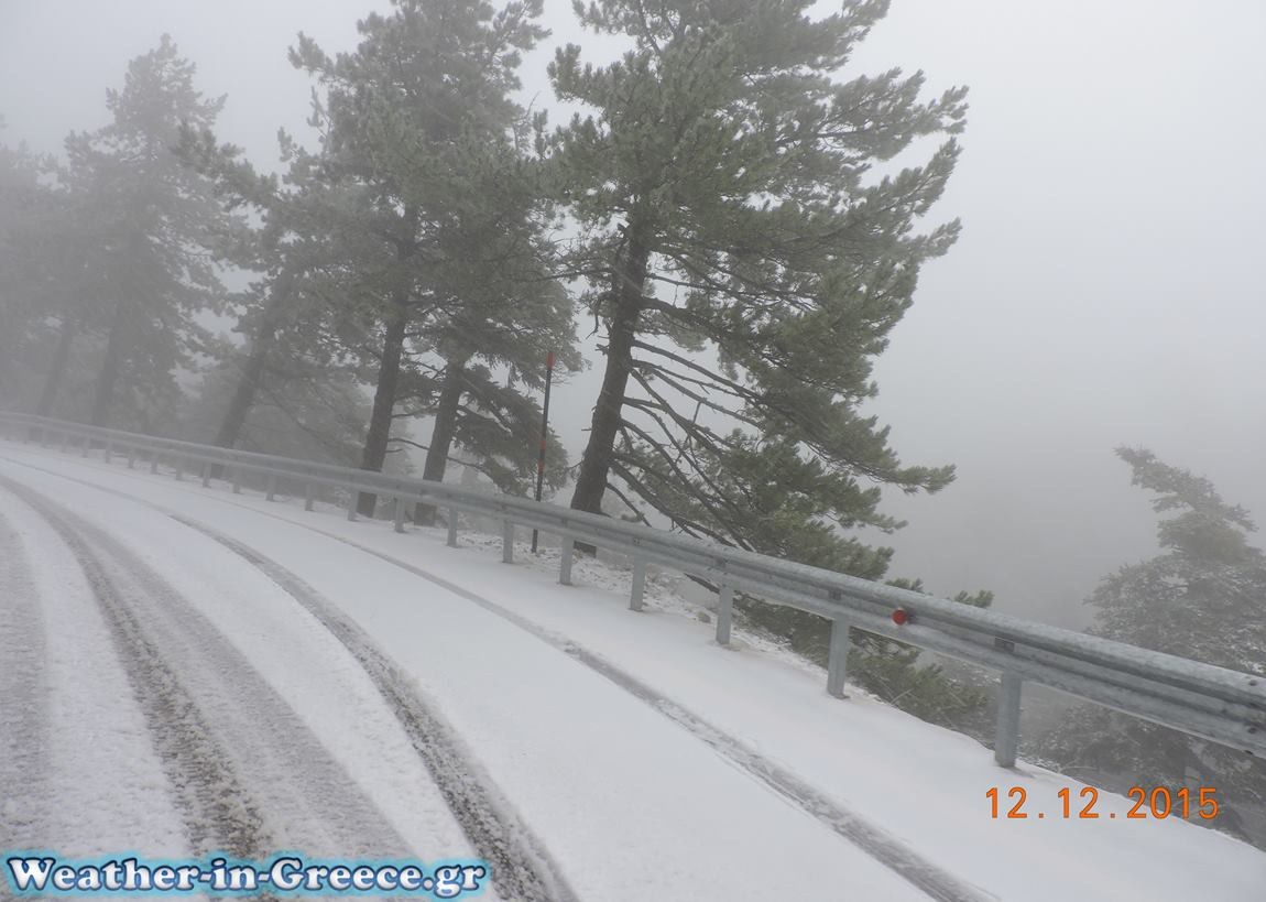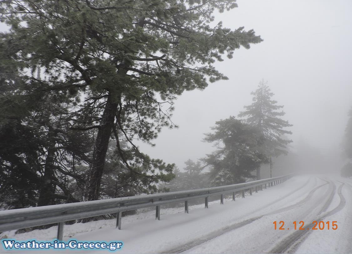 Σύμφωνα με την ιστοσελίδα Weather-in-Greece, από όπου και οι φωτογραφίες, το χιόνι στα 1200-1300 μέτρα φτάνει και τους 5 πόντους.