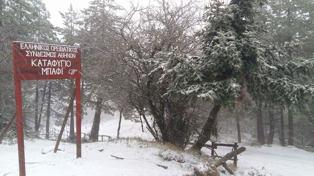 Χιονίζει από χθες το βράδυ στην Πάρνηθα με τη χιονόπτωση να ξεκινάει από τα 800-900 μέτρα, ενώ η χιονόστρωση από τα 1050-1100 μέτρα.