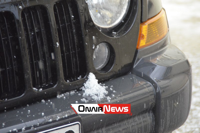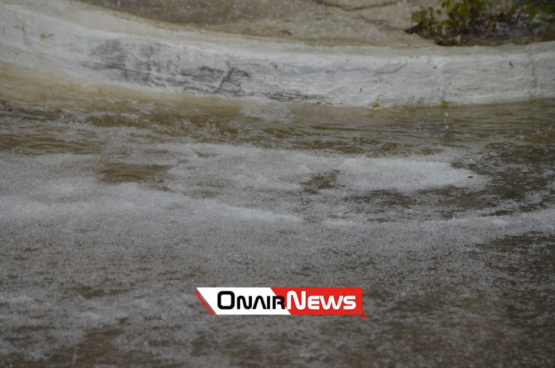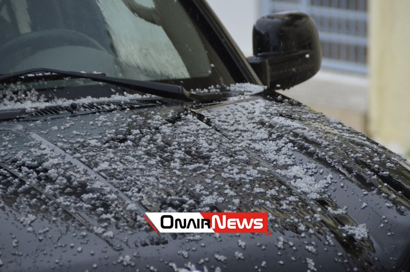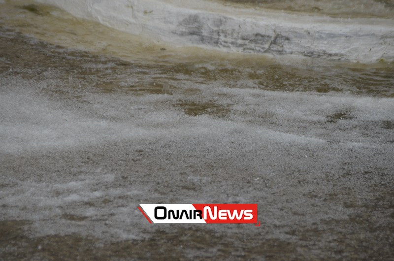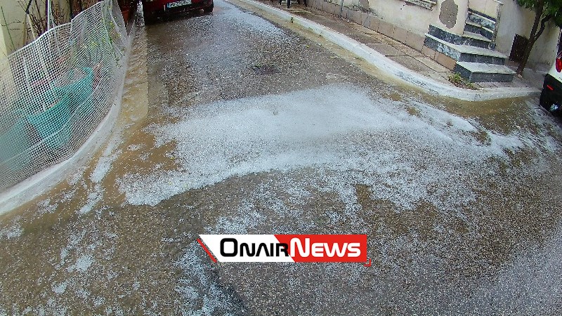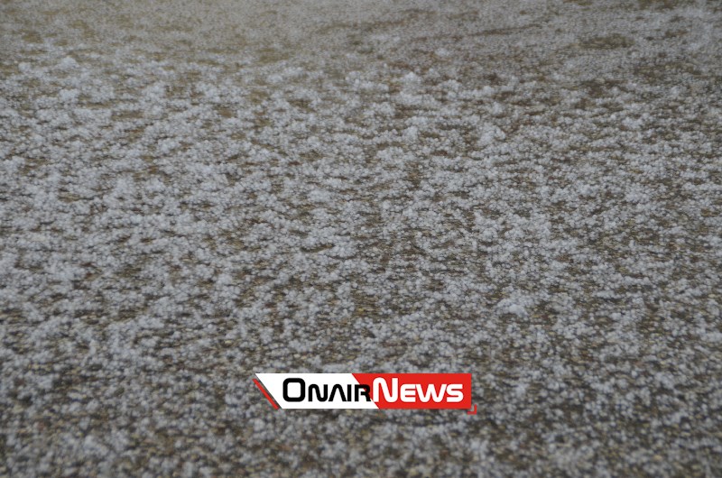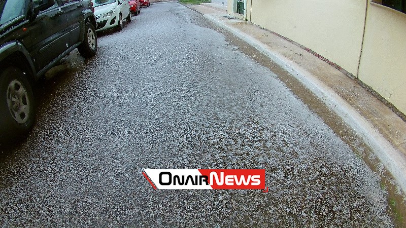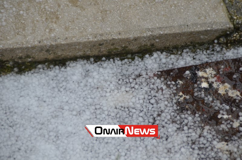 Αν και η χαλαζόπτωση κράτησε λίγα λεπτά, ήταν τόσο ισχυρή που καλύφθηκε το οδόστρωμα.