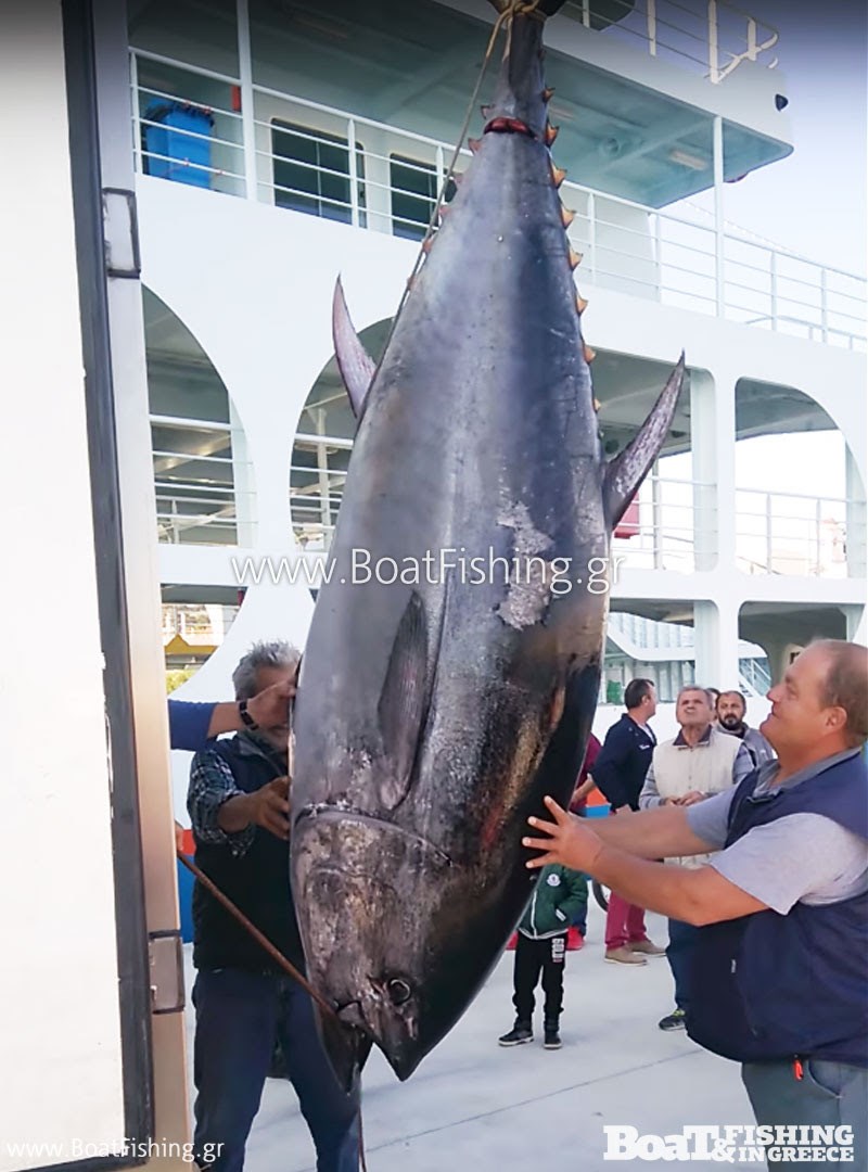 Συγκεκριμένα, είχαν πιάσει έναν πραγματικό γίγαντα της θάλασσας, βάρους 300 κιλών. Έβγαλαν έναν τεράστιο ερυθρό τόνο του είδους thunnus thynnus ή όπως είναι γνωστός ως «γαλαζόπετρος».