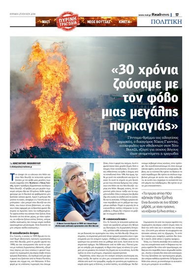 Την άποψη ότι οι κάτοικοι στο Μάτι και στον Νέο Βουτζά τα τελευταία χρόνια ζούσαν με τον φόβο μιας μεγάλης πυρκαγιάς εκφράζει στη Realnews ο Νίκος Γιαννής, πρώην πρόεδρος εξωραϊστικού συλλόγου Νέου Βουτζά.