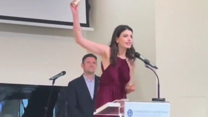 Η νεαρή κοπέλα κρατώντας το πτυχίο της στα χέρια ανέβηκε στο βήμα και μέσα σε όλα αναφέρθηκε και στην Απόλυτη σταρ.