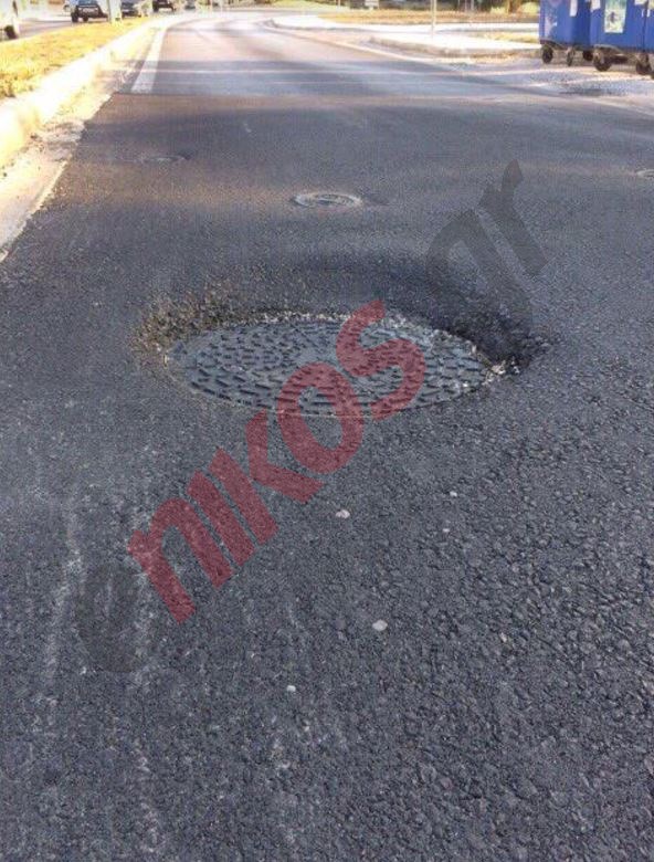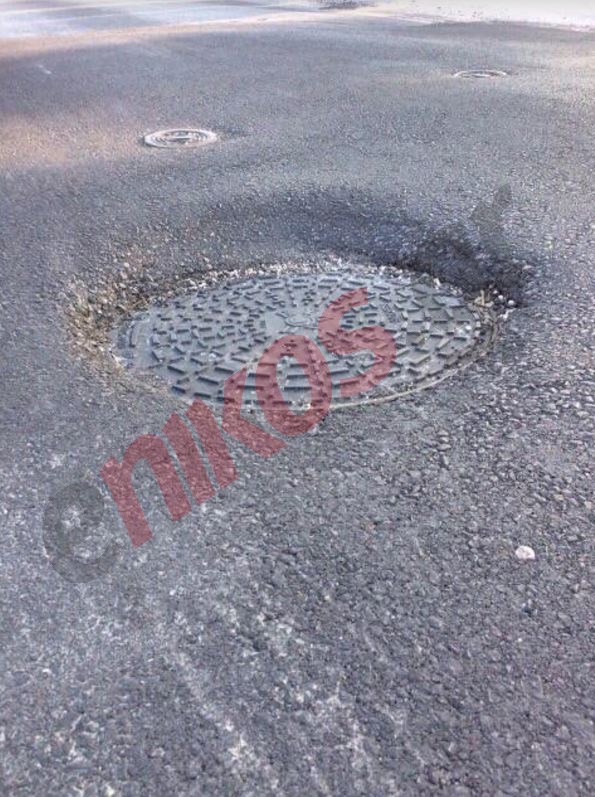 Όπως φαίνεται στις φωτογραφίες που έστειλε αναγνώστης του enikos.gr, το όχημα του έχει υποστεί σοβαρές υλικές ζημίες καθώς έπεσε μέσα στη λακκούβα.