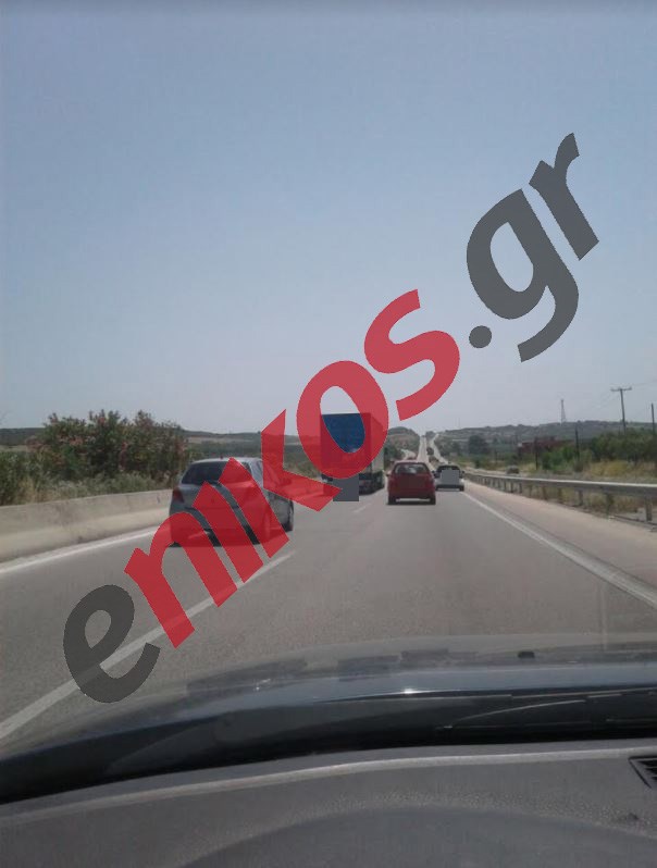 Στην αριστερή λωρίδα έχοντας αναπτύξει μεγάλη ταχύτητα βρίσκεται ο οδηγός μιας νταλίκας με βουλγάρικες πινακίδες στην εθνική οδό, με κατεύθυνση προς Χαλκιδική.