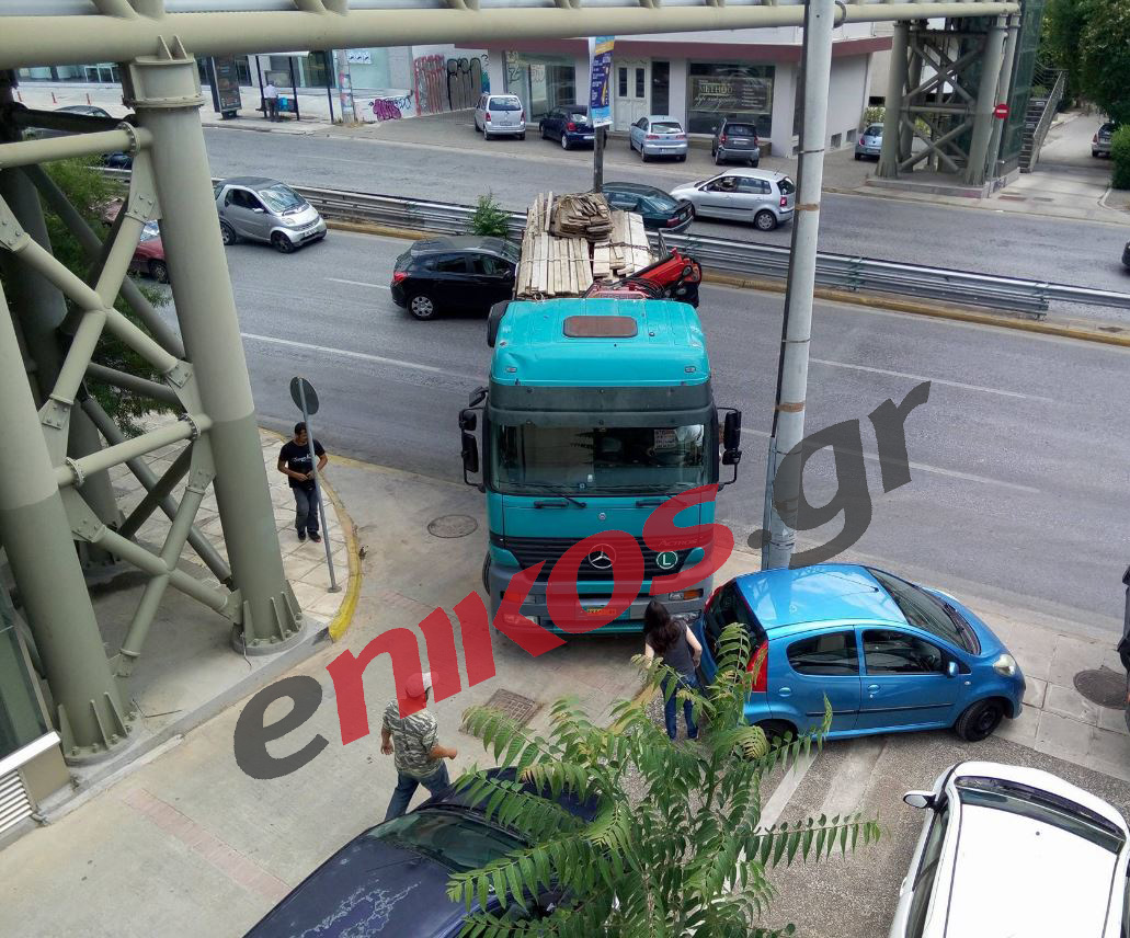 Έκπληκτοι έμειναν οι οδηγοί στην λεωφόρο Κηφισίας, στο ύψος του Αμαρουσίου, όταν αντίκρισαν ένα τεράστιο φορτηγό να επιχειρεί να μπει παράνομα σε ένα μικρό στενό της καθόδου της Κηφισίας.