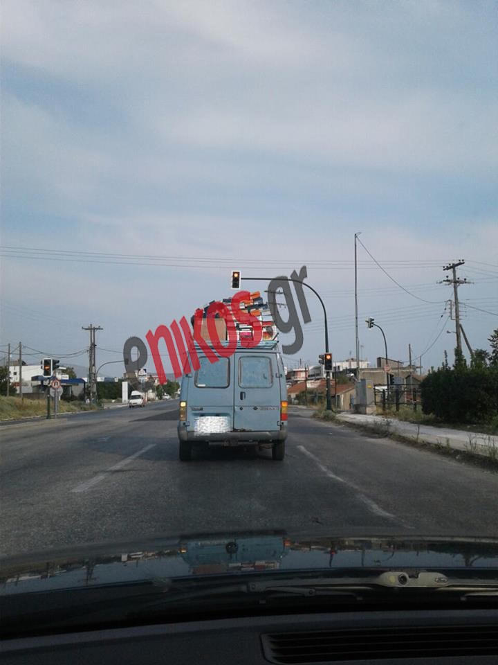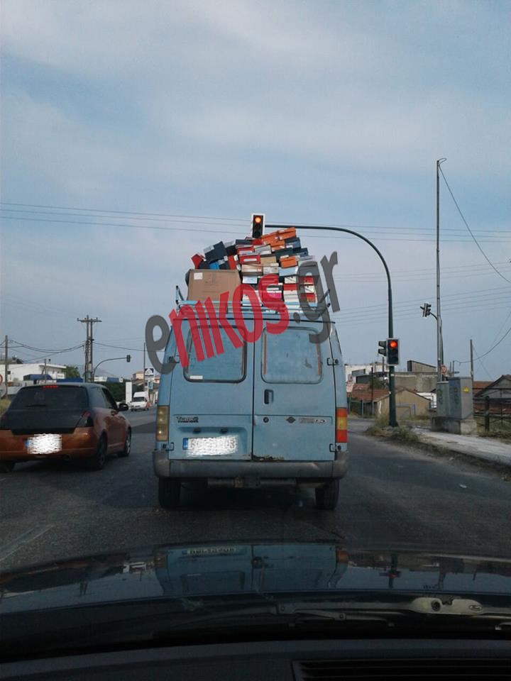 Αναγνώστης του enikos.gr μας έστειλε δύο φωτογραφίες από το προπορευόμενο αυτοκίνητο στην Εθνική και συγκεκριμένα στην είσοδο του Βόλου. δεκάδες κουτιά παπουτσιών, βρίσκονταν στην σχάρα του βαν, με τον αναγνώστη να εκφράζει τον φόβο που βίωσε κατά τη διάρκεια της οδήγησής του.