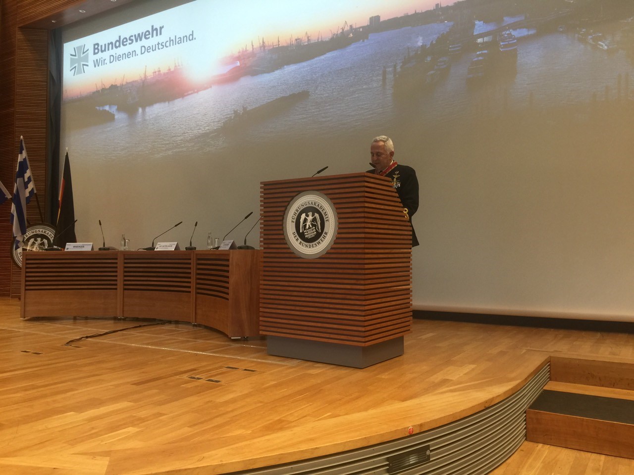 Ακολούθως, ο Αρχηγός ΓΕΕΘΑ, πραγματοποίησε ομιλία στους σπουδαστές του Bundeswehr Command and Staff College, με θέμα “Hellenic Armed Forces and their role as a security provider in East Mediterranean and the Balkans”.