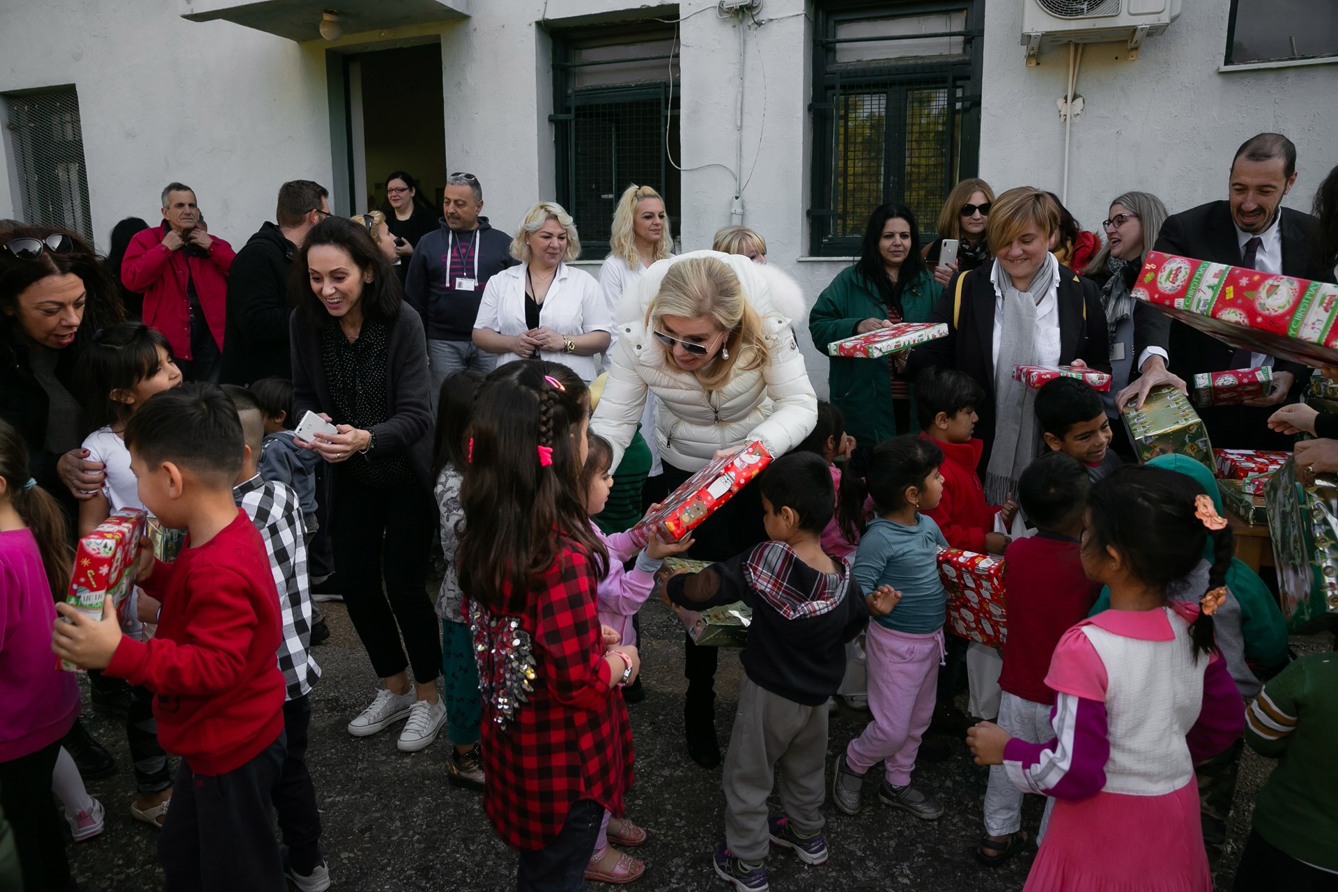 Η Μαριάννα Β. Βαρδινογιάννη μοιράζει δώρα στα παιδιά