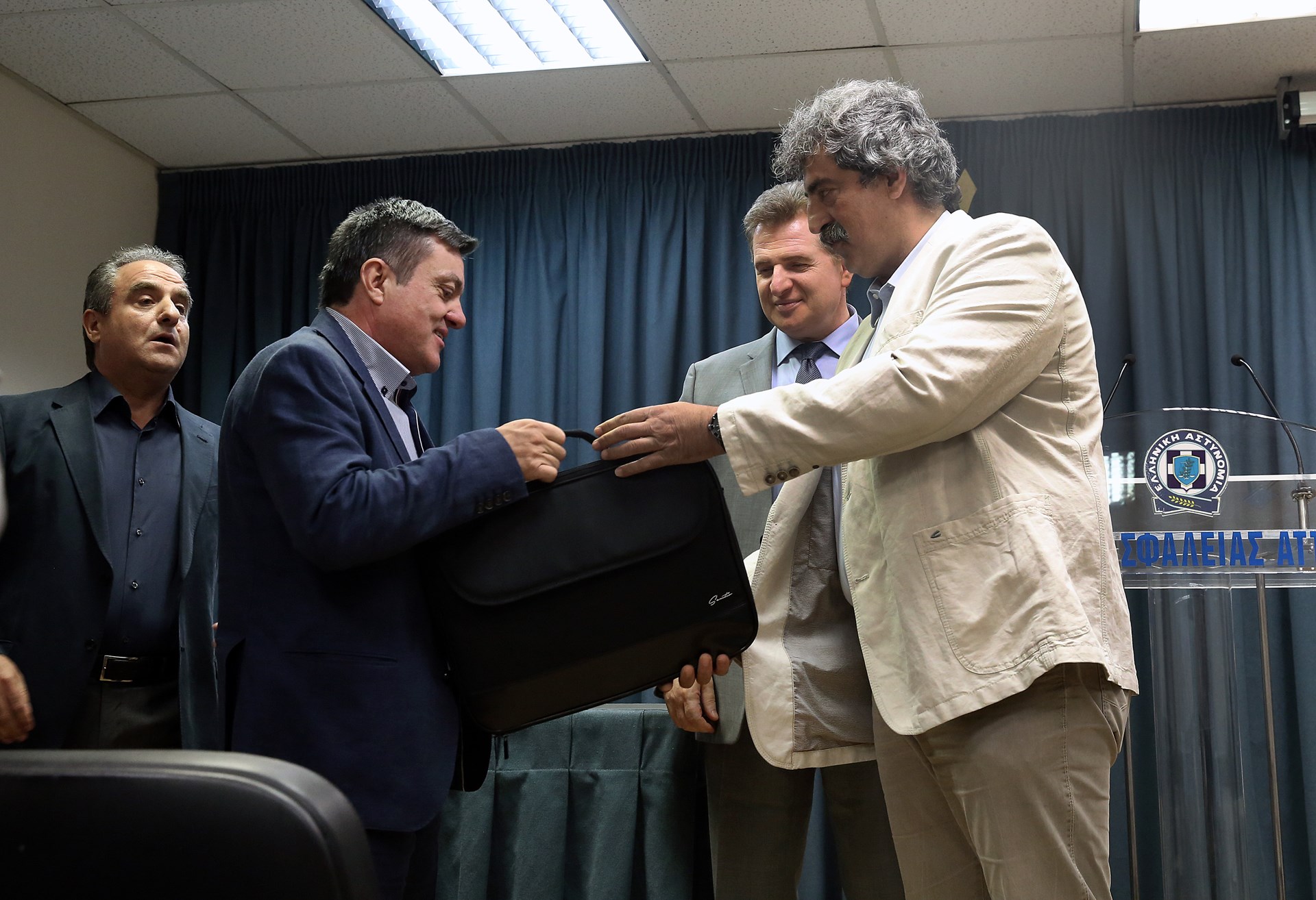 Από την πλευρά του ο υποστράτηγος Χρήστος Παπαζαφείρης υπογράμμισε μεταξύ άλλων: “η ΔΑΑ αποτελεί την αιχμή του δόρατος κατά του κοινού και οργανωμένου εγκλήματος, γίνεται μια συνεχής προσπάθεια για να προστατέψουμε το κοινωνικό σύνολο. Τα αποτελέσματα είναι απτά με χαρακτηριστικό παράδειγμα την επιστροφή των ιατρικών μηχανημάτων που εκλάπησαν τον Μάιο από τα τέσσερα μεγάλα δημόσια νοσοκομεία της χώρας μας. Η σπείρα αυτή είχε χτυπήσει πολλές χώρες ενώ εμείς συνεργαστήκαμε με Αρχές πολλών κρατών”.