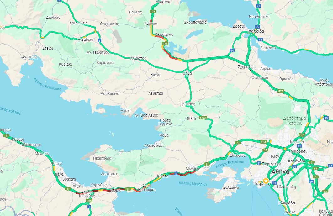 Συγκεκριμένα, η κίνηση είναι ιδιαίτερα αυξημένη στην Αθηνών-Κορίνθου, από την Κόρινθο έως το ύψος των Μεγάρων, με τα οχήματα να κινούνται με πολύ χαμηλές ταχύτητες και τους οδηγούς να καλούνται να οπλιστούν με υπομονή.
