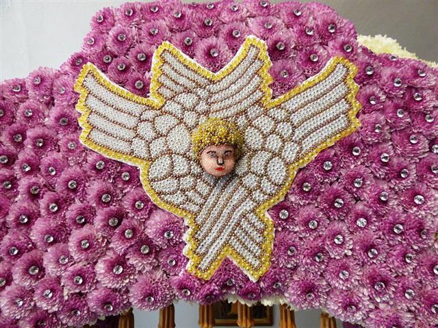 Φέτος ο Επιτάφιος των Αγίων Αγγέλων, όπως τον ονόμασαν, αφού οι τέσσερις άγγελοι φυλάνε στις τέσσερις γωνίες τον Άγιο Τάφο, αποτελείται από σχεδόν 220.000 πέρλες με πολύ μικρό κόστος. Όπως είπε και ο Ἱερεύς Ἰωάννης Σουρλίγκας «Ό,τι λάμπει δεν είναι χρυσός αλλά είναι καλοδουλεμένο».