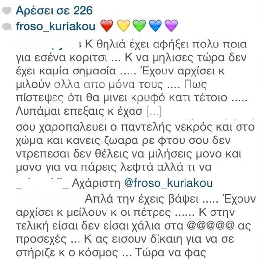 Τις τελευταίες μέρες και μετά τη φημολογία που θέλει τη Φρόσω να οδηγούσε το μοιραίο τζιπ, οι επιθέσεις εναντίον της στην κυριολεξία έχουν πάρει φωτιά.