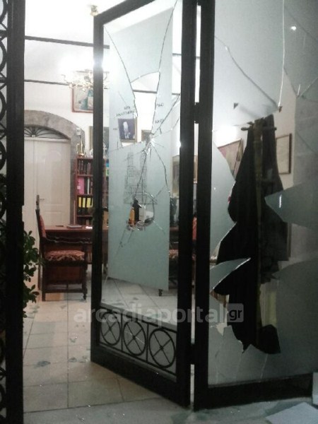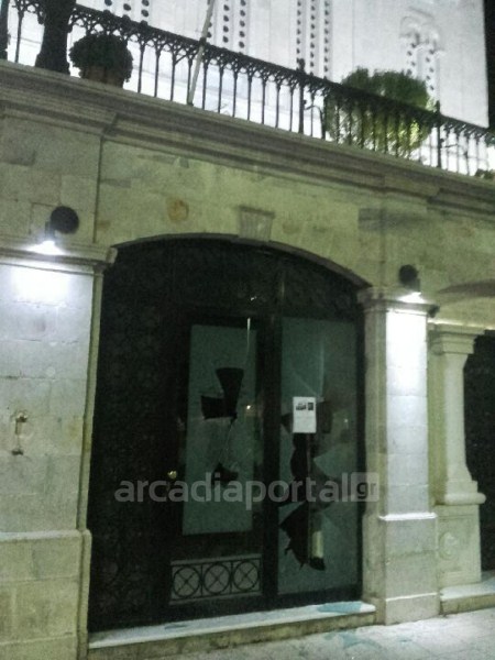 Άγνωστοι έσπασαν τα ξημερώματα της Κυριακής τη γυάλινη είσοδο του γραφείου του Μητροπολιτικού Ναού Αγίου Βασιλείου Τρίπολης.