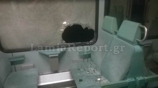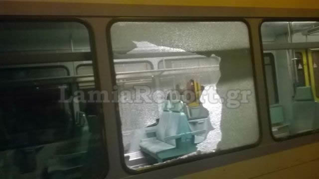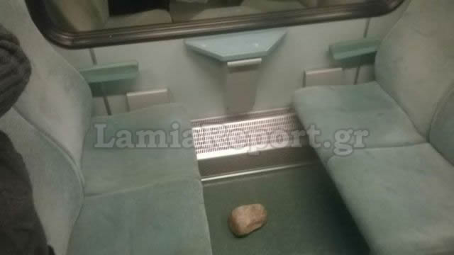 Πιο συγκεκριμένα, ο προαστιακός που εκτελούσε το δρομολόγιο Λαμία – Στυλίδα, μόλις έφτασε στο ύψος της Μεγάλης Βρύσης, πριν από το νηπιαγωγείο, κάποιος ανεγκέφαλος πέταξε την μεγάλη πέτρα που βλέπετε στις φωτογραφίες του lamiareport.gr.
