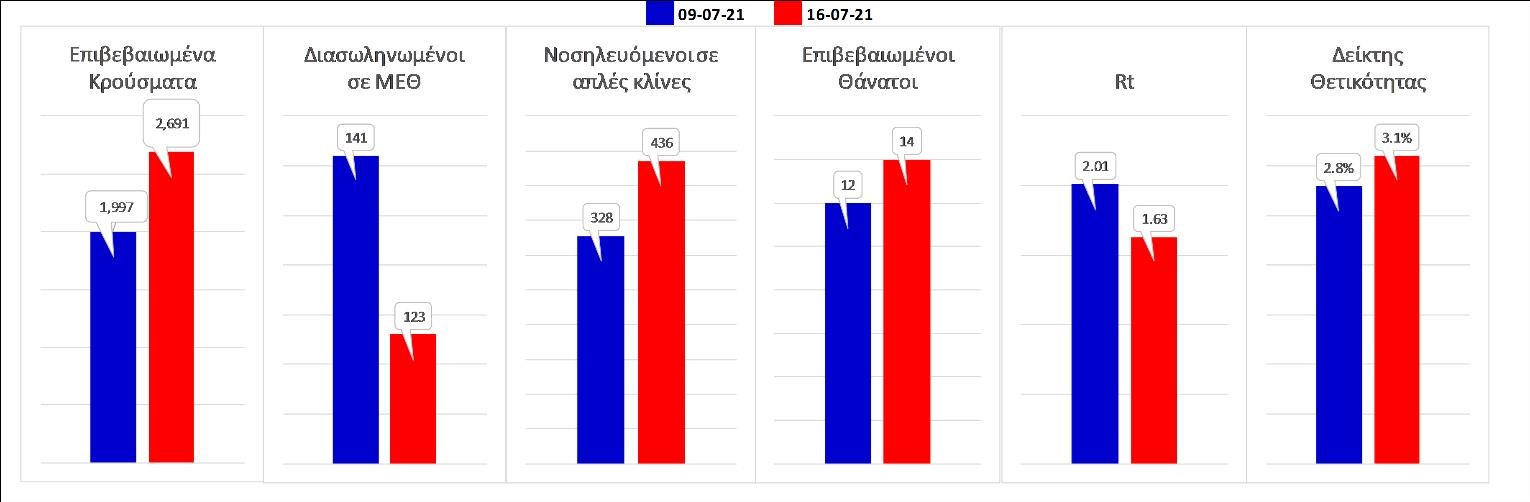 Σχήμα 53. Συγκριτικά αποτελέσματα της επιδημιολογικής εικόνας της Παρασκευής (16/07/2021) σε σχέση με την προηγούμενη (09/07/2021)