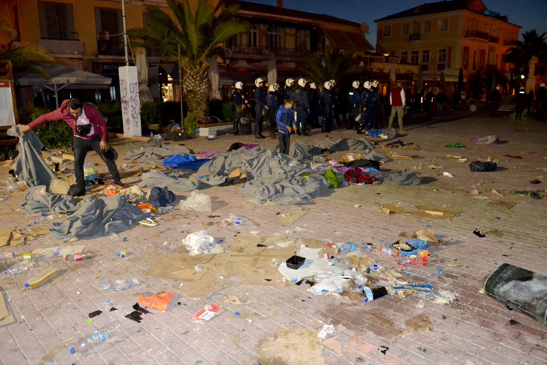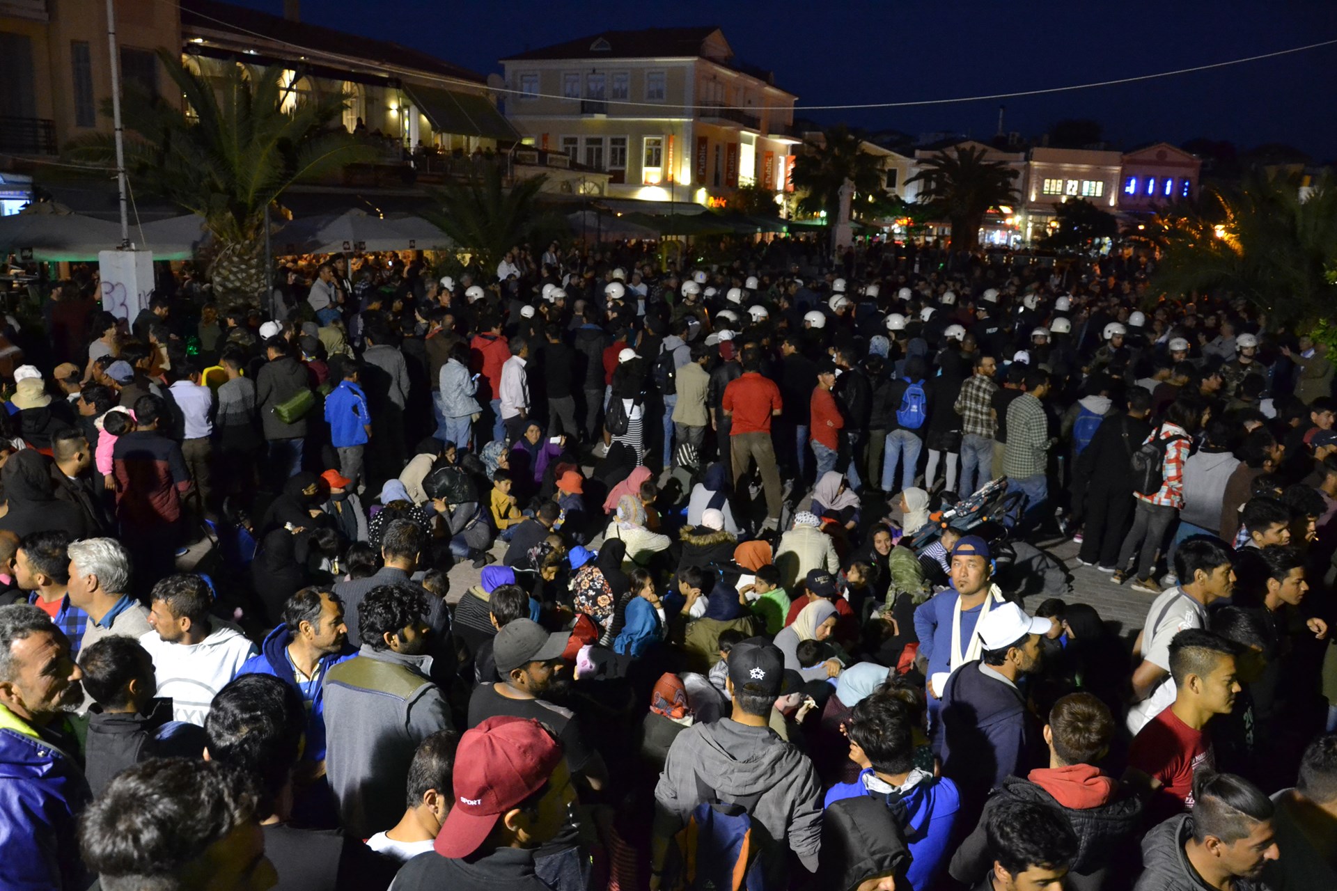 Της τελικής επιχείρησης της Αστυνομίας, είχε προηγηθεί η μετατροπή, καθ’ όλη τη διάρκεια της νύχτας, σε πεδίο μάχης της πλατείας Σαπφούς και της Μυτιληνιάς προκυμαίας, καθώς και των σοκακιών του ιστορικού κέντρου της πόλης. Ομάδες νεαρών, κυρίως ακροδεξιών, επιχειρούσαν όλη νύχτα με σχέδιο και στόχο να διασπάσουν τον κλοιό που είχαν αναπτύξει ισχυρές αστυνομικές δυνάμεις γύρω από την ομάδα των προσφύγων και των μεταναστών.