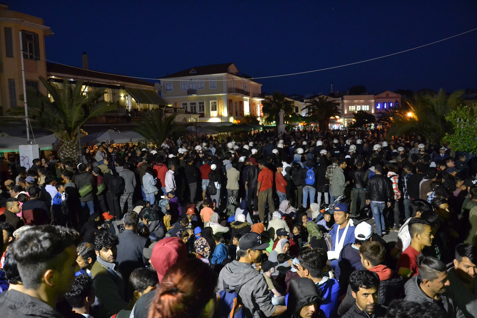 Της τελικής επιχείρησης της Αστυνομίας, είχε προηγηθεί η μετατροπή, καθ’ όλη τη διάρκεια της νύχτας, σε πεδίο μάχης της πλατείας Σαπφούς και της Μυτιληνιάς προκυμαίας, καθώς και των σοκακιών του ιστορικού κέντρου της πόλης. Ομάδες νεαρών, κυρίως ακροδεξιών, επιχειρούσαν όλη νύχτα με σχέδιο και στόχο να διασπάσουν τον κλοιό που είχαν αναπτύξει ισχυρές αστυνομικές δυνάμεις γύρω από την ομάδα των προσφύγων και των μεταναστών.
