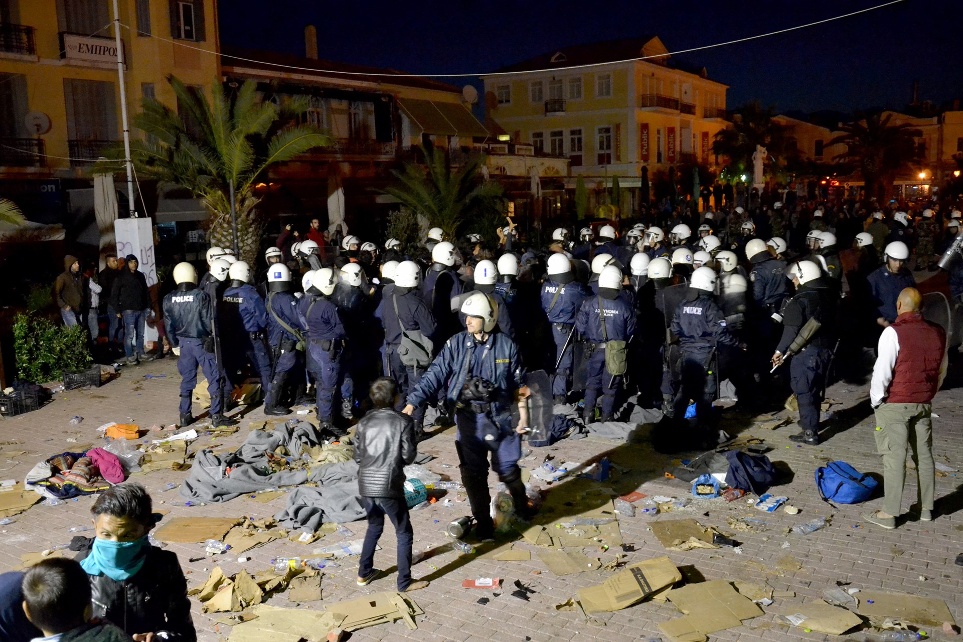 Οι ισχυρές δυνάμεις της Αστυνομίας παρατάχθηκαν αρχικά μεταξύ των ντόπιων και των προσφύγων και μεταναστών, ενώ μια ακόμα διμοιρία των ΜΑΤ τους περικύκλωσε. Σε ενίσχυση των προσφύγων και των μεταναστών, εξάλλου, είχαν σπεύσει πολίτες του αριστερού και του αντιεξουσιαστικού χώρου, καθώς και ομάδα αλληλέγγυων.