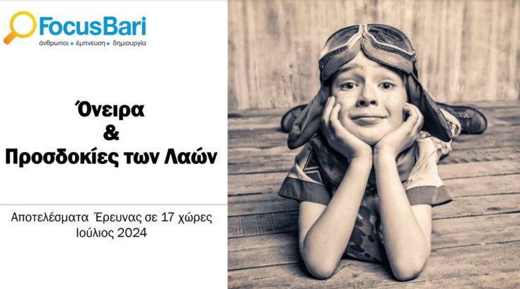 Η Focus Bari που εκπροσωπεί στην Ελλάδα το διεθνές δίκτυο IRIS (International Research Institutes) συμμετείχε σε μια πρωτότυπη έρευνα με θέμα «Επιδιώξεις – Όνειρα – Προσδοκίες» που σχεδιάστηκε και υλοποιήθηκε με πρωτοβουλία του Δικτύου σε 17 χώρες στην αρχή του 2024. Σύμφωνα με τα πολύ ενδιαφέροντα ευρήματα:
