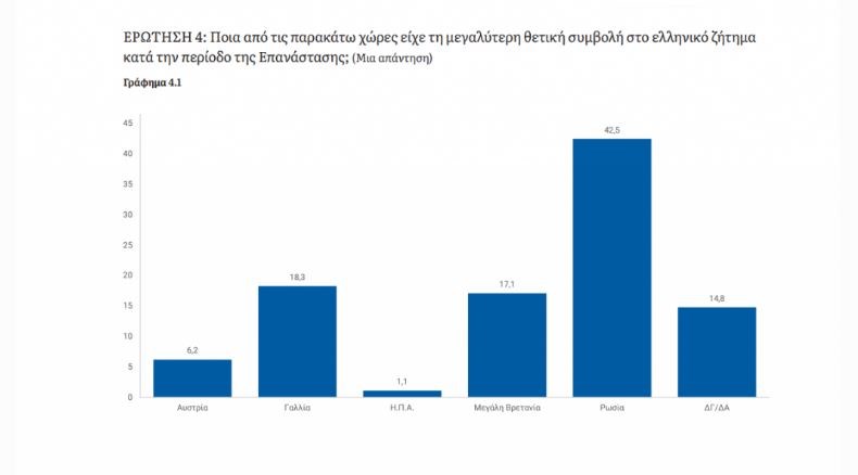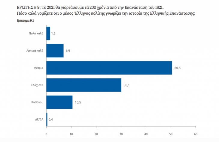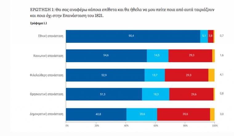 Ιδιαίτερο ενδιαφέρον παρουσιάζει η έρευνα που διενήργησε η εταιρία MARC για λογαριασμό του Κέντρου Φιλελεύθερων Μελετών-Μάρκος Δραγούμης (ΚΕΦίΜ), με αντικείμενο την Επανάσταση του 1821.