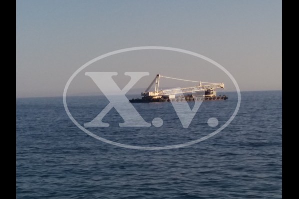 Ο γερανός είναι αγκυροβολημένος περίπου 500 μέτρα από το λιμάνι της Χώρας Σφακίων στο τοπικό αγκυροβόλιο.