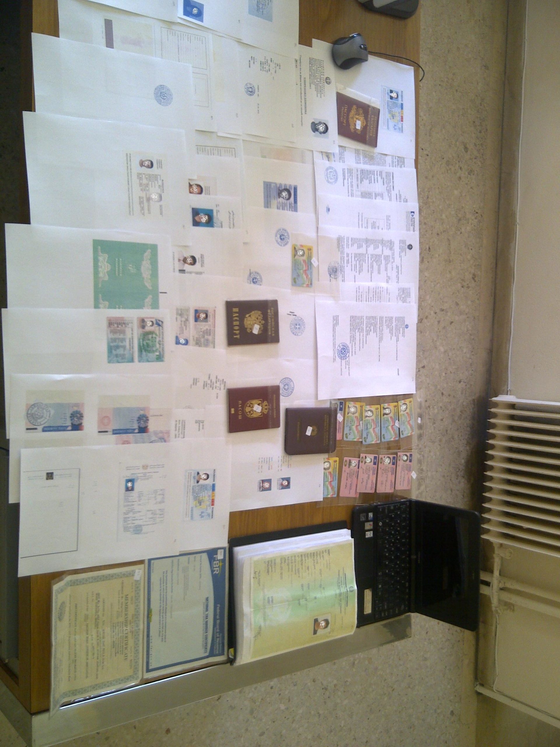 Πλήθος πλαστών ταξιδιωτικών εγγράφων και πιστοποιητικών.