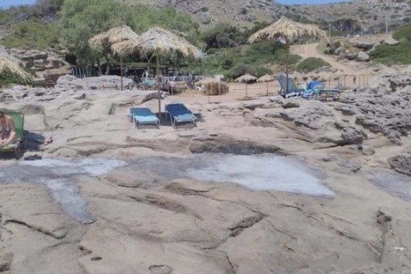 Με τσιμέντο καλύφθηκαν τα βράχια σε μια από τις ομορφότερες και πιο διάσημες παραλίες της Ρόδου.