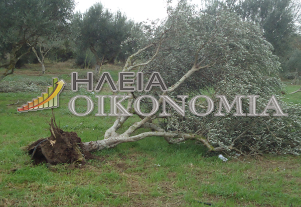 Ο ανεμοστρόβιλος ξερίζωσε ελαιόδεντρα, προκαλώντας μεγάλη ζημιά στους παραγωγούς της περιοχής και έκοψε στα δύο κολώνες τις ΔΕΗ