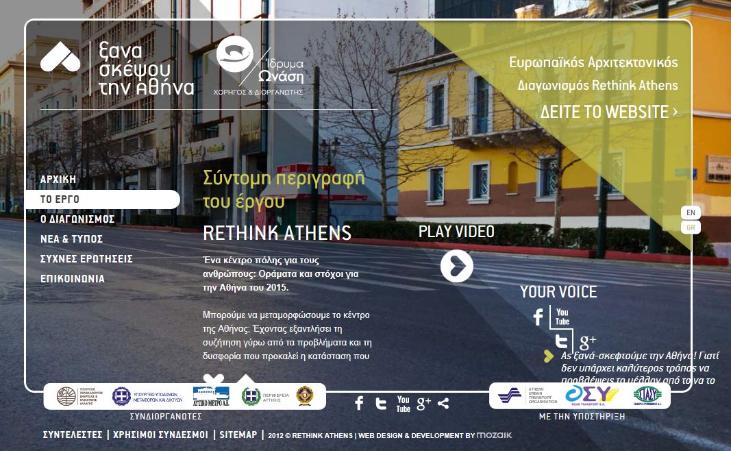 Ο σχεδιασμός του δημόσιου χώρου θα γίνει με τον Ευρωπαϊκό Αρχιτεκτονικό Διαγωνισμό «ΑΝΑΣΥΓΚΡΟΤΗΣΗ ΤΟΥ ΚΕΝΤΡΟΥ ΤΗΣ ΑΘΗΝΑΣ ΜΕ ΑΞΟΝΑ ΤΗΝ ΟΔΟ ΠΑΝΕΠΙΣΤΗΜΙΟΥ» που διεξάγεται και χρηματοδοτείται από το Ίδρυμα Ωνάση.