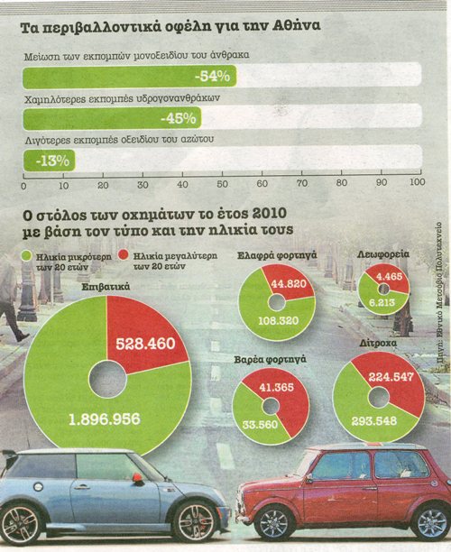 – Ειδικά για τα οχήματα με άδεια κυκλοφορίας από το 2011 και μετά προτείνεται η δυνατότητα καθημερινής κυκλοφορίας εντός του δακτυλίου εφόσον εκπέμπουν διοξείδιο του άνθρακα λιγότερο από 140 g/km.  Πηγή: Εθνος