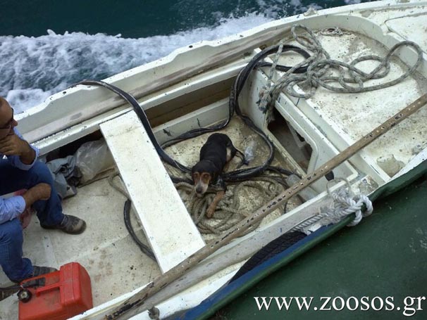 Στη θέα ενός αβοήθητου σκυλιού ήρθαν το πρωί Βρετανοί τουρίστες σε ένα μικρό κομμάτι στεριάς μέσα στον Ισθμό της Κορίνθου.Οι Βρετανοί σοκαρισμένοι με το θέμα ειδοποίησαν την ξεναγό, η οποία επικοινώνησε με τις αρχές. Το ζώο σώο και αβλαβές απεγκλωβίστηκε στις 13:45 και από το Λιμεναρχείο Ισθμίων του προσέφεραν αμέσως νερό και τροφή. Δεν εντοπίστηκε όμως ο ιδιοκτήτης του και το σκυλάκι αφέθηκε ελεύθερο στην περιοχή.