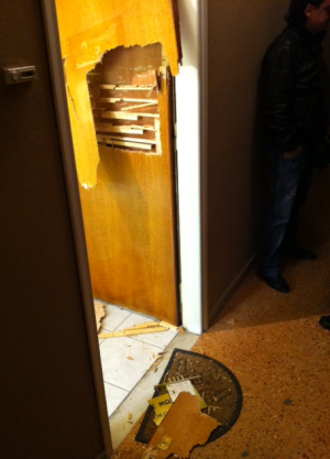 Σύμφωνα με κατοίκους της πολυκατοικίας στην οδό Σαλάκου, το περιστατικό δεν κράτησε πάνω από δύο λεπτά και οι κουκουλοφόροι αφού έσπασαν με βαριοπούλες την είσοδο του γραφείου, πέταξαν από το μπαλκόνι του δευτέρου ορόφου έπιπλα και ηλεκτρονικό εξοπλισμό, ενώ μεγάλες είναι οι φθορές και στο εσωτερικό του γραφείου.Πηγή: agriniopress.gr