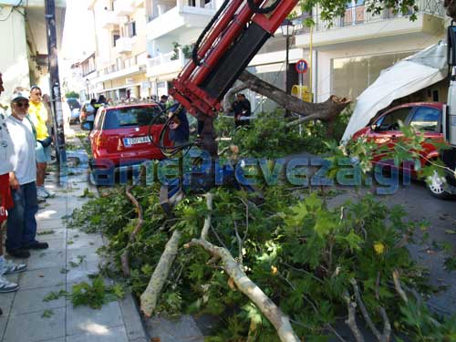 Στις 9:45, και ενώ στον δρόμο κυκλοφορούσαν όχι μόνο αυτοκίνητα αλλά και πεζοί, ένα μεγάλο κλαδί έσπασε, καταλήγοντας σε σταθμευμένα οχήματα.