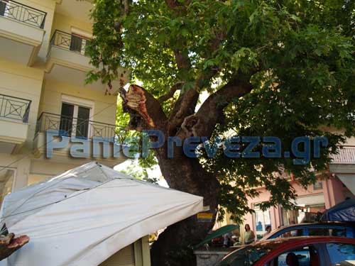 Από θαύμα δεν θρηνήσαμε θύματα, πριν από λίγο, στην Πρέβεζα, όταν έσπασε κλαδί από έναν «υπεραιωνόβιο» πλάτανο στην οδό Π. Τσαλδάρη, έναν από τους πιο πολυσύχναστους δρόμους της πόλης.
